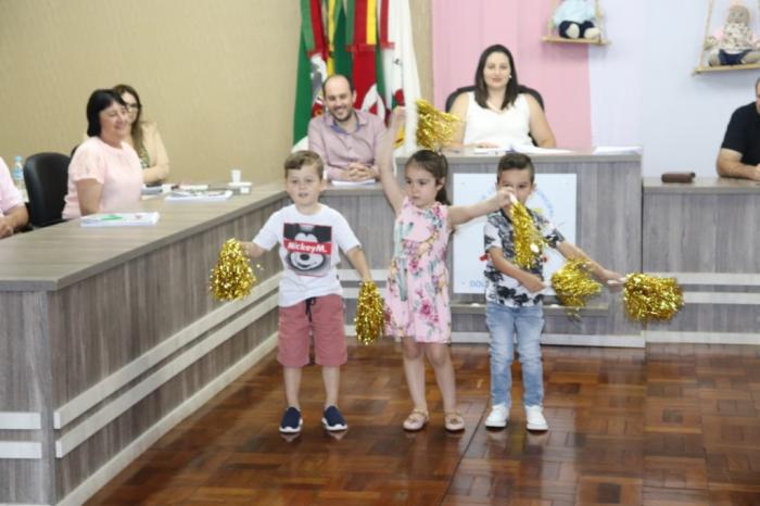 A Sessão Solene contou a Presença da Prefeita Municipal Sra. Catea Rolante, Vice-Prefeito, Sr. Álvaro Giacobbo e esposa, Assessor Jurídico deste Poder Legislativo Dr. Luciano Sandri e demais autoridades, familiares do Bebê Prefeito do ano de 2019 e bebê prefeita de 2018 e seus familiares e demais público presente.