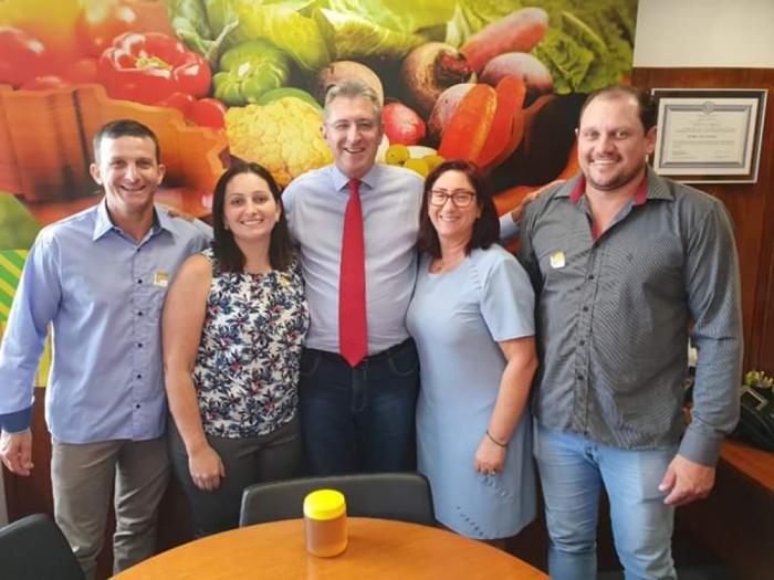 Prefeita Catea, Presidente da Câmara Veridiana, vereadores Rodrigo Baldissera e Claudiano Dorigon com o deputado federal Heitor Schuch