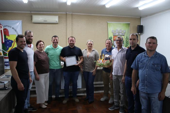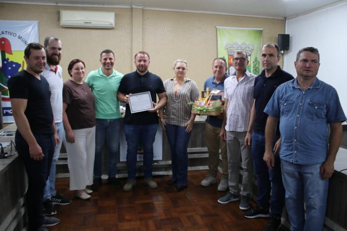 Em reconhecimento aos relevantes serviços prestados à comunidade da Linha Barra do Zeferino deste Município, Moção de Aplausos é entregue ao cidadão Simão Dalberto.